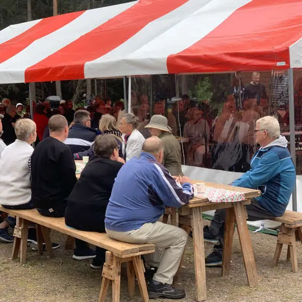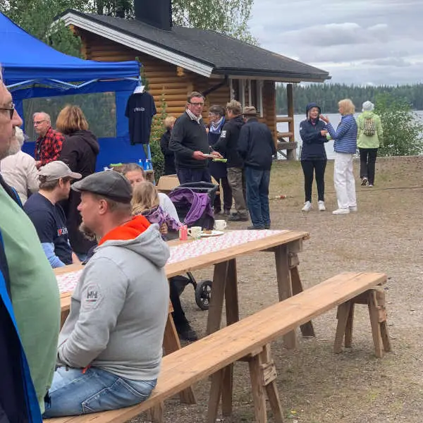 Vuoden 2024 muikkubileet pidettiin aurinkoisessa säässä Rengon yhteismetsän mökillä Kotakalliontiellä. Väkeä oli paikalla lähes sata henkeä.